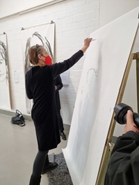 „Es ist toll, welche Ausmaße das Projekt annimmt“, findet Mauga. Denn zwischen Stadtbad und Litfaßsäulen waren ihre Frauenporträts nicht nur in der Mediothek und in Hüls zu sehen. Es gab auch mehrere Performances, unter anderem in der Cubus Kunsthalle in Duisburg - wo weitere Frauen Modell saßen, um die Sammlung zu erweitern. Auch Bärbel Bas hat sich kurz vor ihrem Amtsantritt als Bundestagspräsidentin in Tusche malen lassen.